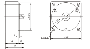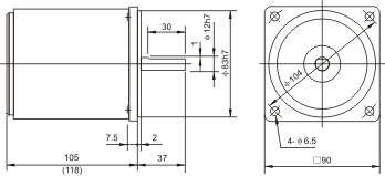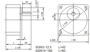 )內爲5IK40RA-A(C)和5IK40RGN-A(C)調速型尺寸